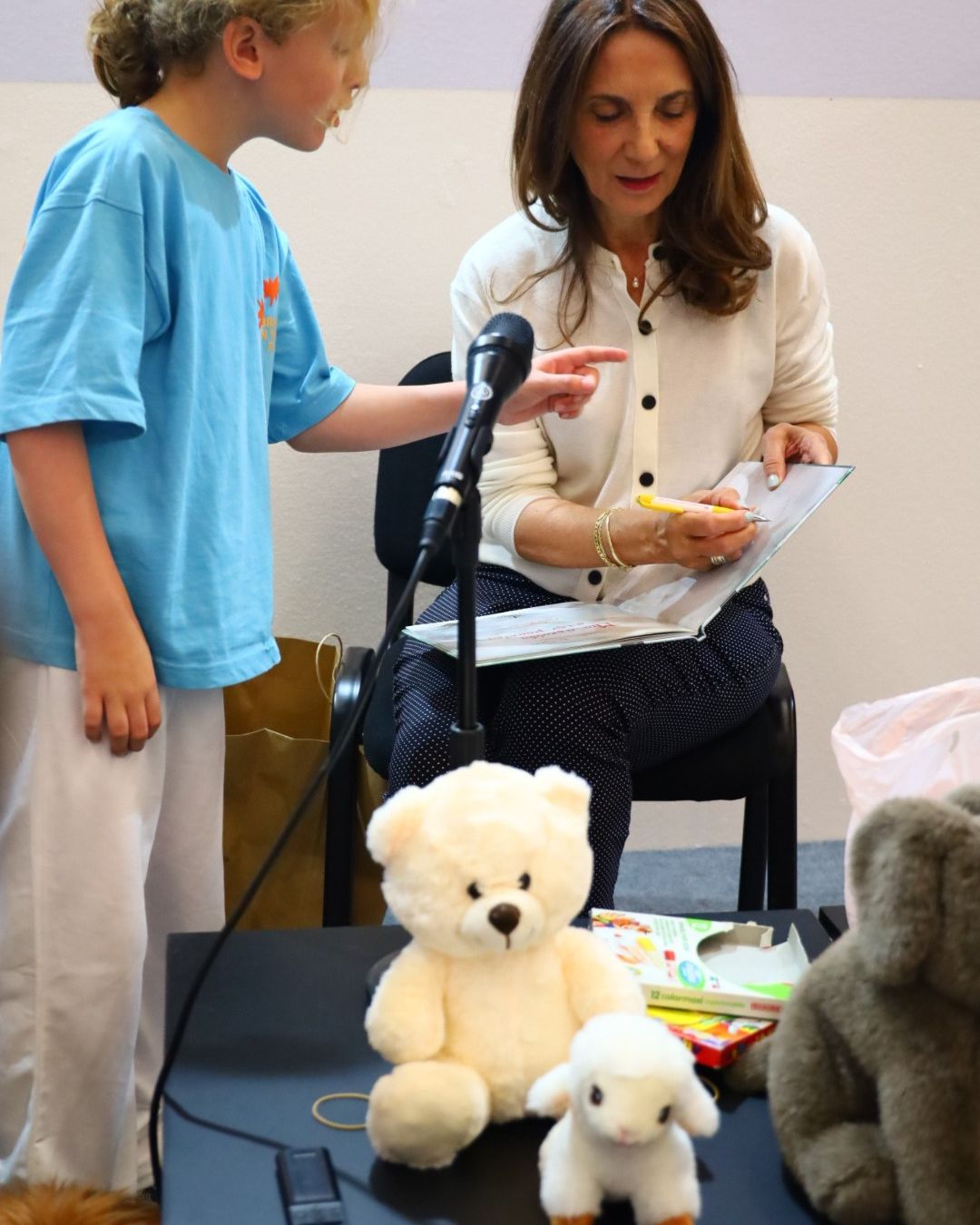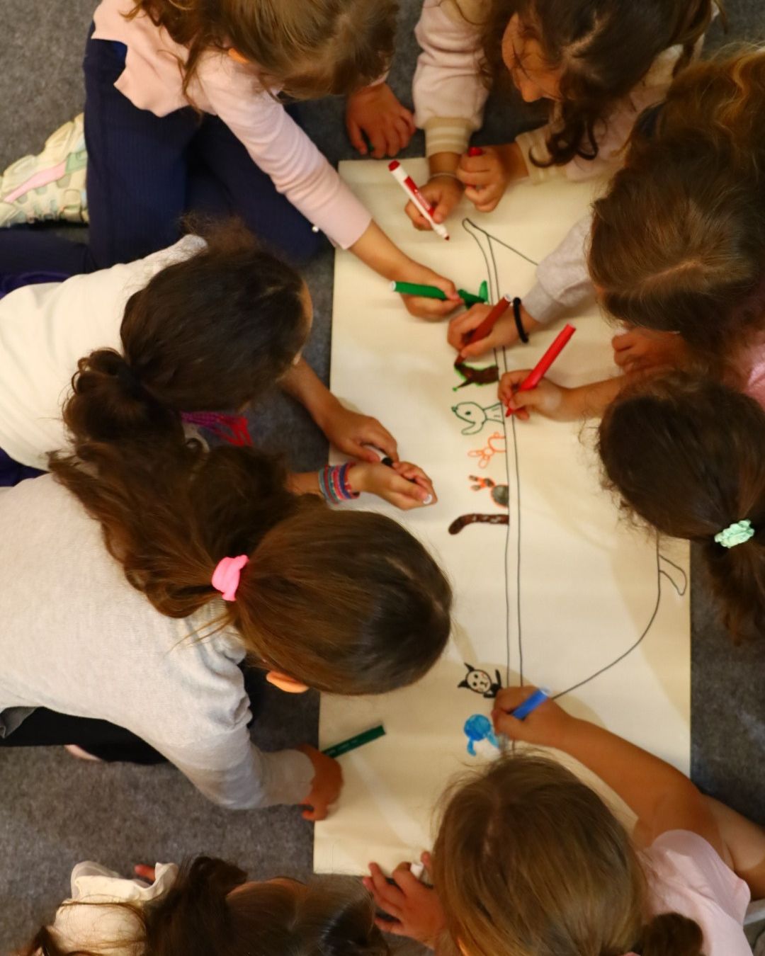 Μετά την ανάγνωση, τα παιδιά έγιναν δημιουργικά: ζωγράφισαν τα ζώα της ιστορίας και άφησαν ελεύθερη τη φαντασία τους. Στο τέλος, η συγγραφέας εκτίμησε με προσοχή και ευγένεια κάθε μία από τις ζωγραφιές. Ως ένδειξη ευχαριστίας, τα παιδιά τραγούδησαν ένα γερμανικό παιδικό τραγούδι – μια ζεστή στιγμή πολιτισμικής ανταλλαγής που συγκίνησε τόσο τη συγγραφέα όσο και τους παρευρισκόμενους.