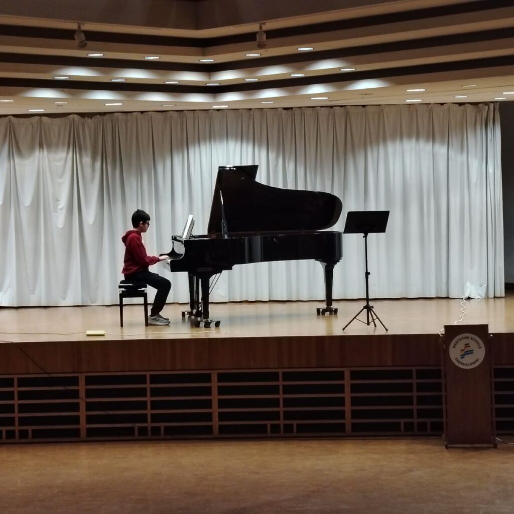 Την Κυριακή 25 Ιανουαρίου πραγματοποιήθηκε ο Περιφερειακός Διαγωνισμός «Οι νέοι παίζουν μουσική 2026». Πέντε μαθήτριες και μαθητές της Γερμανικής Σχολής Θεσσαλονίκης συμμετείχαν με επιτυχία στις κατηγορίες Πιάνο και Τραγούδι, αποσπώντας πρώτα και δεύτερα βραβεία.