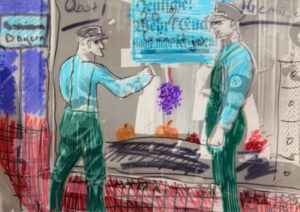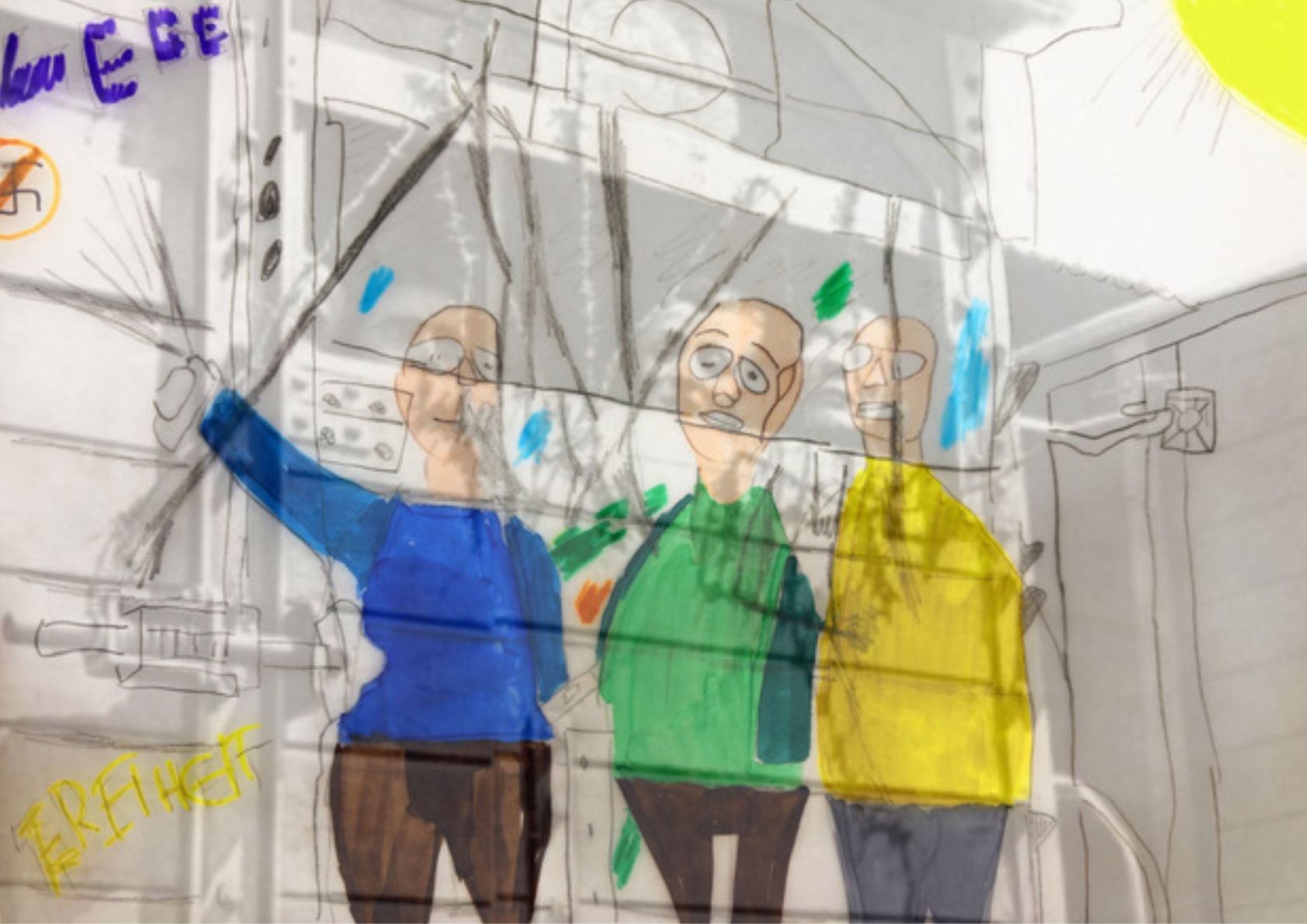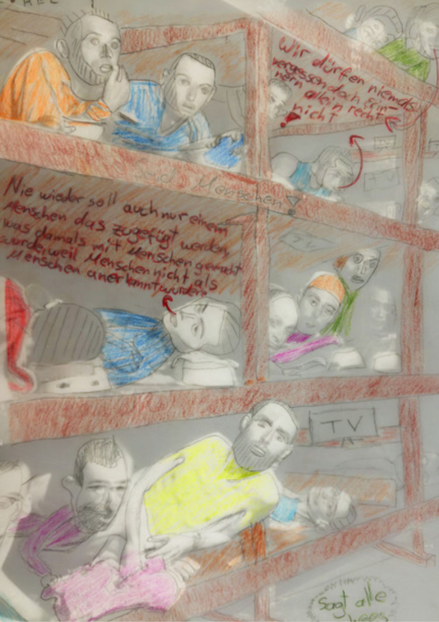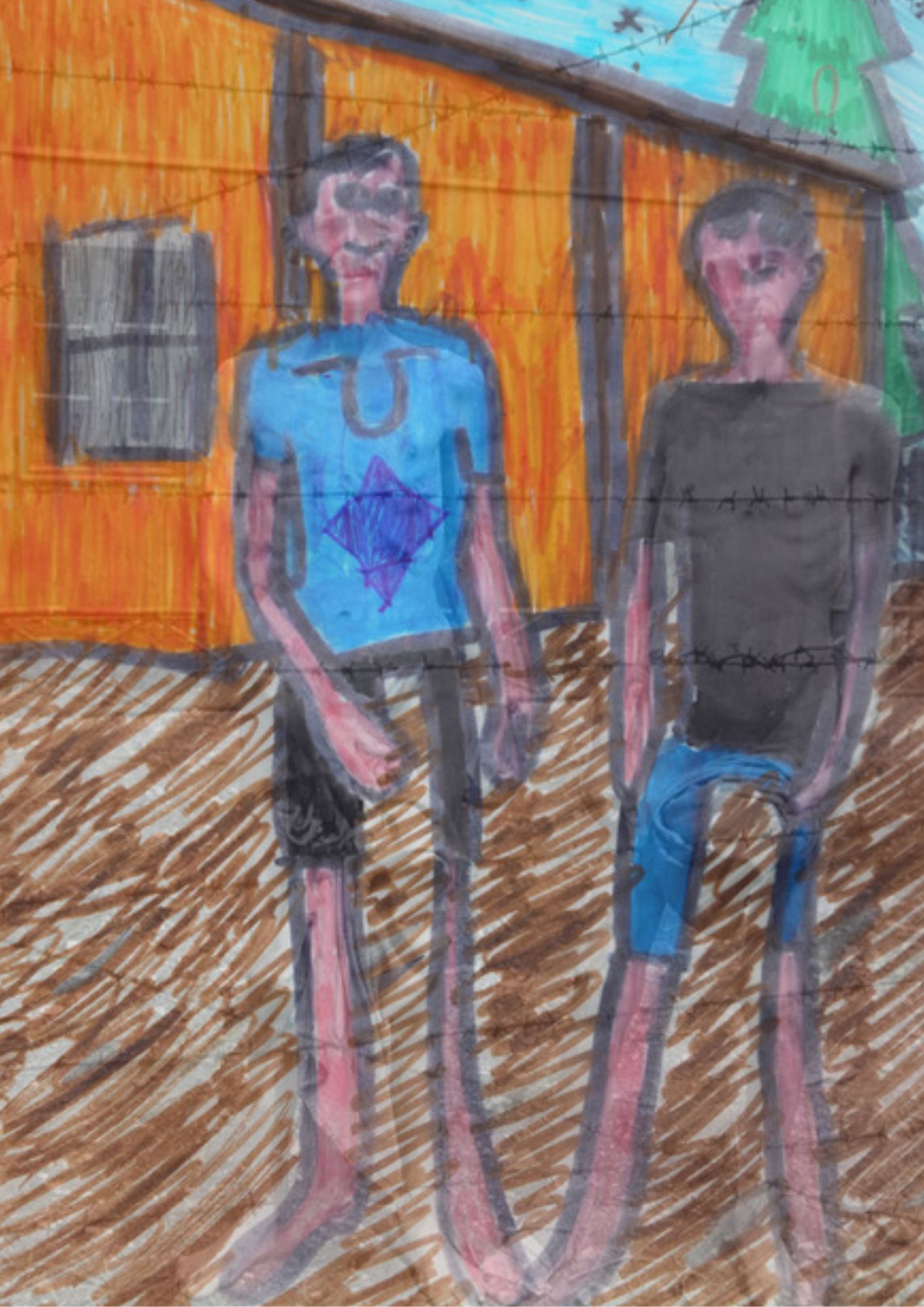 Αφού διαβάσαμε το βιβλίο και ενημερωθήκαμε για το Ολοκαύτωμα και τη ζωή στα στρατόπεδα συγκέντρωσης, μας ανατέθηκε η εργασία να ζωγραφίσουμε μια «κόντρα εικόνα». Η διαδικασία ήταν η εξής: κάθε μαθητής και κάθε μαθήτρια έπρεπε να βρει στο διαδίκτυο μια σκληρή εικόνα που να σχετίζεται με το Ολοκαύτωμα. Στη συνέχεια, πήραμε ένα ριζόχαρτο, πάνω στο οποίο έπρεπε να αποδώσουμε την εικόνα με έντονα χρώματα. Η εικόνα αυτή αναδεικνύεται με ειδικό φωτισμό, έτσι ώστε όποιος βλέπει το έργο να προβληματίζεται. Τα έργα αυτά εκτίθενται στο σχολείο μας στη μνήμη των θυμάτων του Ολοκαυτώματος.