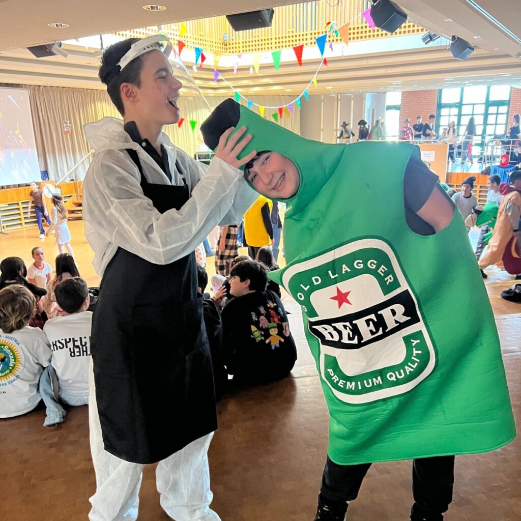 Η ΓΣΘ γέμισε με χρώματα και φαντασία, καθώς οι μαθήτριες και οι μαθητές ήρθαν στο σχολείο με πρωτότυπες, δημιουργικές και πολύχρωμες στολές. Οι διάδρομοι γέμισαν με σούπερ ήρωες, παραμυθένιους χαρακτήρες και… χαριτωμένα «τερατάκια» – μια εικόνα που έφερε σε όλα τα πρόσωπα θαυμασμό και σκόρπισε καλή διάθεση σε όλο το σχολείο.
