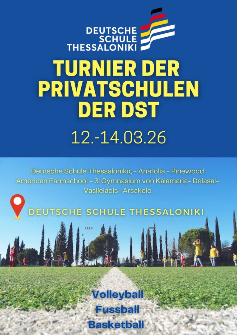 Από τις 12 έως τις 14 Μαρτίου 2026 θα πραγματοποιηθεί στις εγκαταστάσεις της Γερμανικής σχολής Θεσσαλονίκης το ετήσιο Τουρνουά Ιδιωτικών Σχολείων. Για τρεις ημέρες, μαθήτριες και μαθητές διακεκριμένων σχολείων της Θεσσαλονίκης και της ευρύτερης περιοχής, θα συναντηθούν σε αθλητικές αναμετρήσεις στα αθλήματα της πετοσφαίρισης, του ποδοσφαίρου και της καλαθοσφαίρισης.