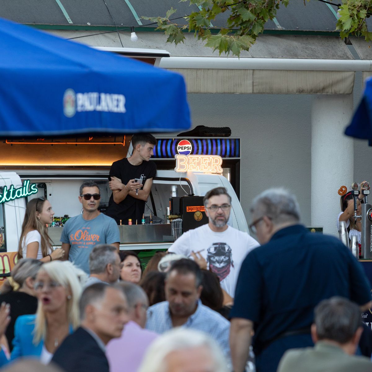 Οι επισκέπτες απόλαυσαν αυθεντικά γερμανικά εδέσματα, όπως λουκάνικα, Bretzel και πατατοσαλάτα, ενώ είχαν την ευκαιρία να δοκιμάσουν γερμανικές και ελληνικές μπύρες. 🎶🍻