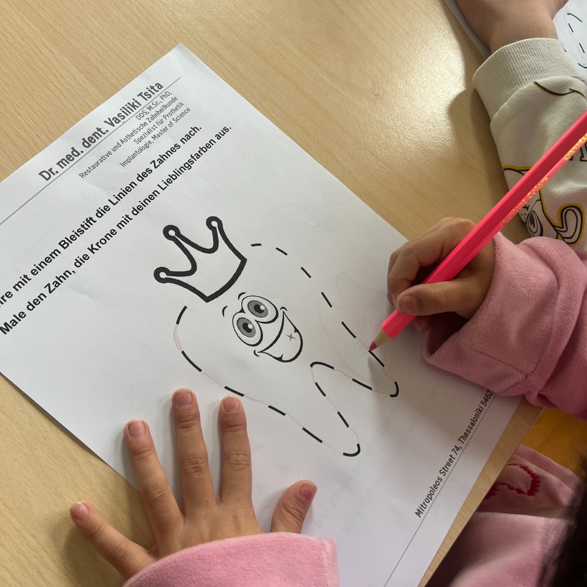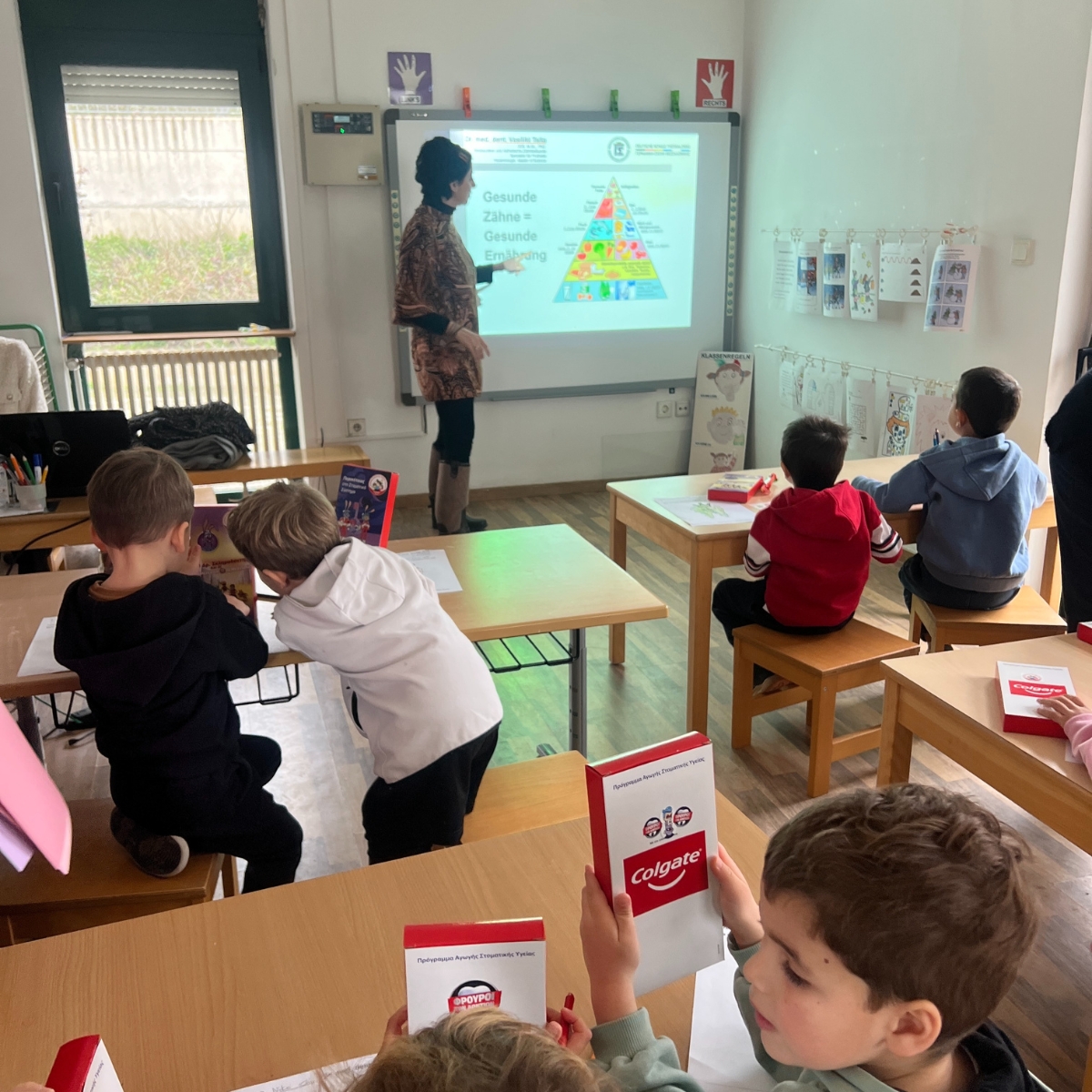 Με πολλή υπομονή και ενθουσιασμό, η Δρ. Τσίτα έδειξε στα παιδιά πώς να κρατούν σωστά την οδοντόβουρτσα και ποια τεχνική βουρτσίσματος εξασφαλίζει καθαρά δόντια. Επιπλέον, έδωσε πολύτιμες συμβουλές για τη σωστή διατροφή, η οποία είναι απαραίτητη για υγιή δόντια. Τα παιδιά είχαν την ευκαιρία να κρατήσουν τις οδοντόβουρτσές τους και να εξασκηθούν με την καθοδήγηση της ειδικού– μια πρώτης τάξεως ευκαιρία να εφαρμόσουν άμεσα όλα όσα έμαθαν!