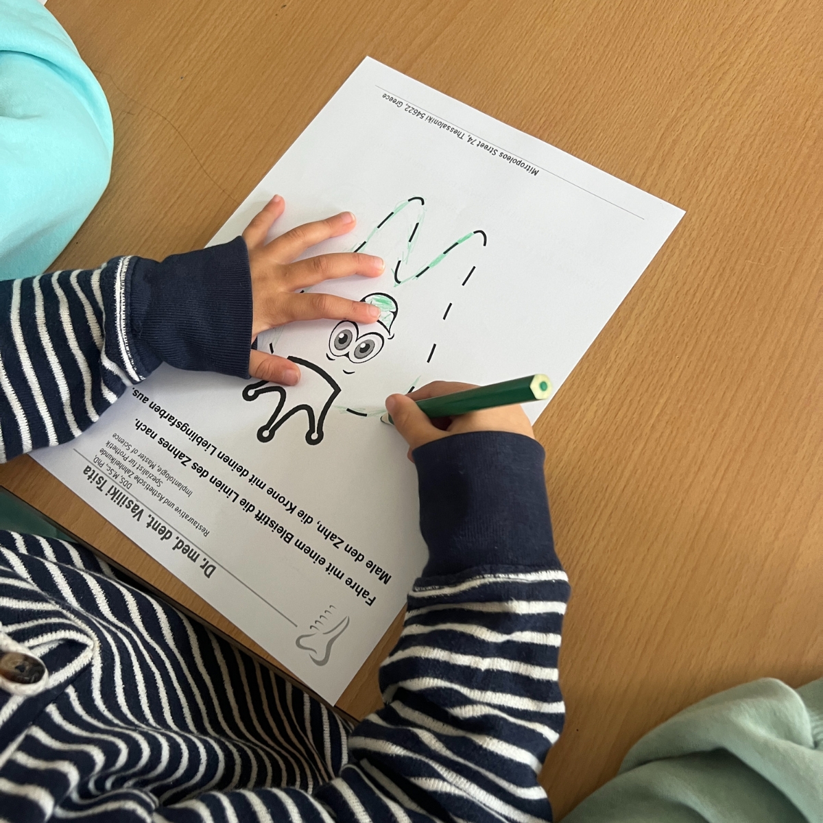 Σήμερα πραγματοποιήθηκε στο νηπιαγωγείο μια ενδιαφέρουσα και εκπαιδευτική δράση για το βούρτσισμα των δοντιών, κατά την οποία τα παιδιά έμαθαν με διασκεδαστικό τρόπο όλα όσα αφορούν τη στοματική υγιεινή. Η οδοντίατρος Δρ. Βασιλική Τσίτα επισκέφθηκε το νηπιαγωγείο και εξήγησε στους μικρούς εξερευνητές πόσο σημαντικό είναι να βουρτσίζουν σωστά τα δόντια τους, ώστε να προλαμβάνουν την τερηδόνα και άλλες ασθένειες των δοντιών.